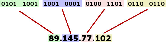 To improve readability, this binary sequence is broken into 8-digit chunks called octets. These octets are then changed into denary numbers, separated by dots.