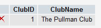 The existing row is shown below where the record is identified by the primary key ClubID = 1